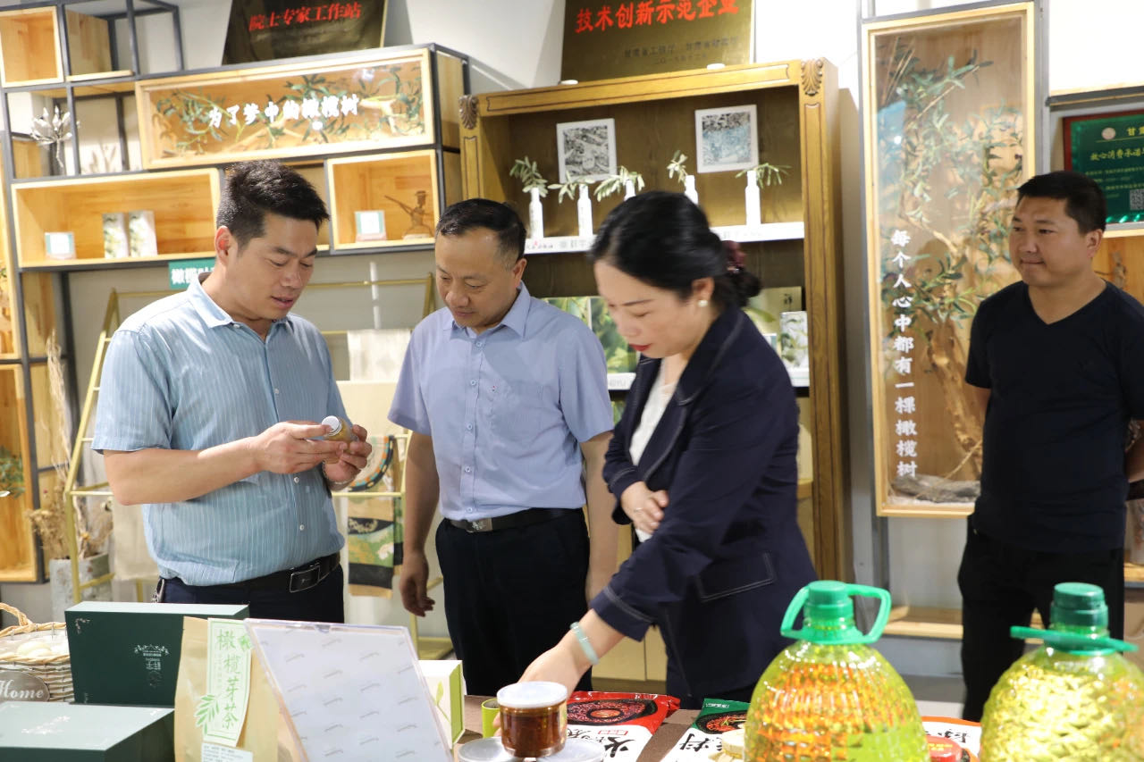 在產(chǎn)品體驗(yàn)區(qū)王總向王處長一行介紹了祥宇特級初榨橄欖油、橄欖茶、橄欖菜、橄欖保健品等系列產(chǎn)品,