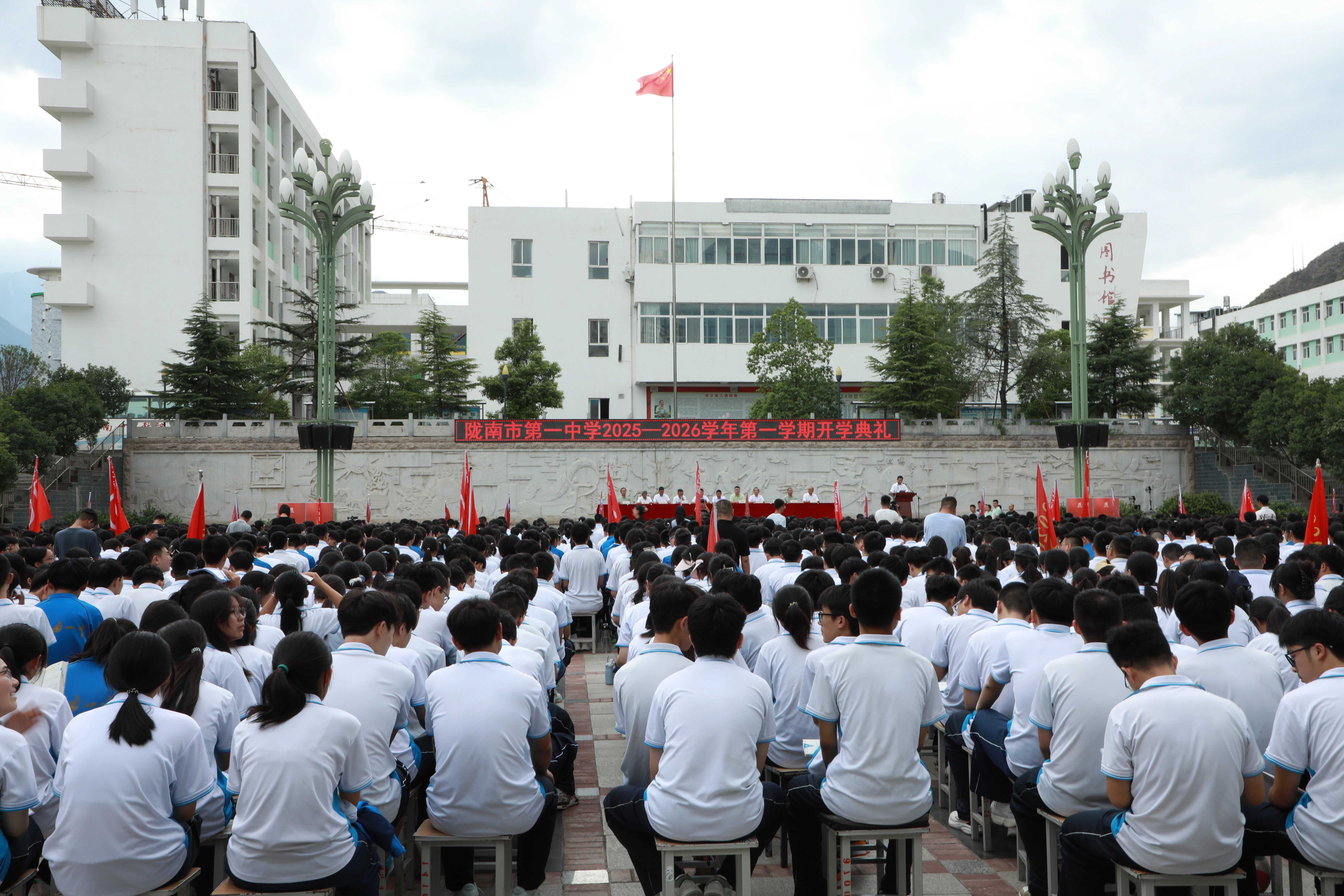 8 月 26 日下午,隴南一中校園內(nèi)紅旗飄揚、朝氣盎然,